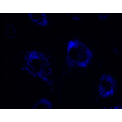 Lysosome Blue is a blue lysosomal dye that stains lysosome in living cells. Lysosome Blue can be used to measure the pH of acidic organelles, such as lysosomes. The Lysosome Blue becomes more fluorescent in acidic environments with pKa at ~5.1  ..
