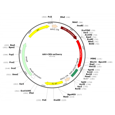 Product Category: premade recombinant AAV; AAV-CMV-mCherry; AAV-mCherry; AAV1-CMV-mCherry; AAV1-mCherry Description: AAV1-mCherry is a pre-packaged rAAV in serotype 1 (with capsid from AAV serotype 1..