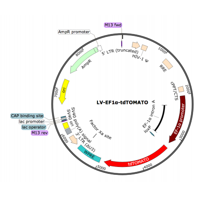 Product Category: Premade recombinant lentivirus; LV-EF1α-tdTOMATO; LV-EF1A-tdTOMATO; EF1α-tdTOMATO Lentivirus; EF1A-tdTOMATO Lentivirus Description: LV-EF1α-tdTOMATO is a pre-made lentivirus which e..