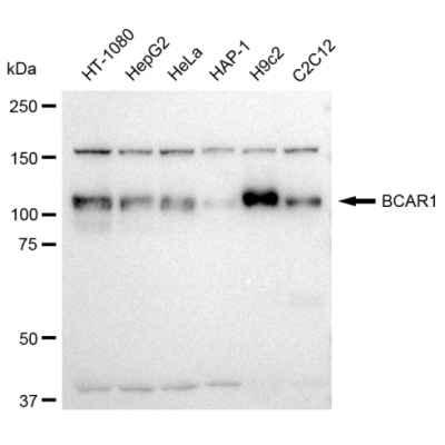 Reactivity: Human, Mouse, Rat Applications: WB, FCM, WB-KD Isotype: IgG Clone: 23GB3690 Host Species: Rabbit Clonality: Monoclonal Synonyms: BCAR1; BCAR1 Scaffold Protein, Cas Family Member; CASS1; CAS; Cas Scaffolding Protein Famil..