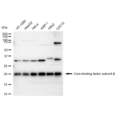 Reactivity: Human, Mouse, Rat Applications: WB, FCM, WB-KD Isotype: IgG Clone: 23GB3785 Host Species: Rabbit Clonality: Monoclonal Synonyms: CBFB; Core-Binding Factor Subunit Beta; PEBP2B; SL3/AKV Core-Binding Factor Beta Subunit; S..