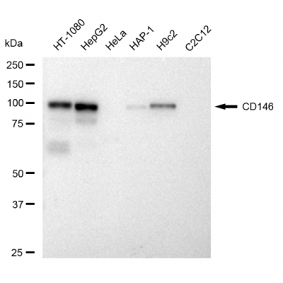 Reactivity: Human, Rat Applications: WB, IF/IC, FCM, WB-KD Isotype: IgG Clone: 23GB2705 Host Species: Rabbit Clonality: Monoclonal Synonyms: MCAM; Melanoma Cell Adhesion Molecule; MUC18; METCAM; HEMCAM; CD146; S-Endo 1 Endothelial-A..