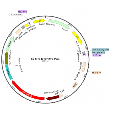 Product Category: Premade recombinant lentivirus; LV-CMV-tdTOMATO-Puro; LV-CMV-tdTOMATO; LV-tdTOMATO; CMV-tdTOMATO-Puro Lentivirus Description: Lentivirus CMV-tdTOMATO-Puro is pre-made lentivirus whi..
