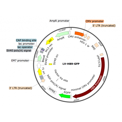 Product Category: Premade recombinant lentivirus; LV-HB9-GFP; HB9-GFP Lentivirus Description: Lentivirus HB9-GFP is pre-made lentivirus which expresses GFP under the mouse HB9 promoter. HB9 promoter ..