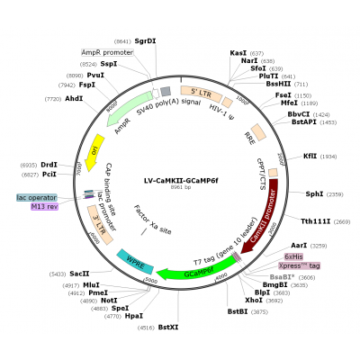 Product Category: Premade recombinant lentivirus; LV-CaMKII-GCaMP6f; CaMKII-GCaMP6f Lentivirus Description: GCaMP is a genetically encoded calcium indicator (GECI) and created from a fusion of gr..