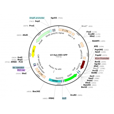 Product Category: Premade recombinant lentivirus; LV-Syn-DIO-GFP; DIO-GFP lentivirus Description: Lentivirus Syn-DIO-GFP is a pre-made lentivirus which will Cre dependently over-express GFP driven un..