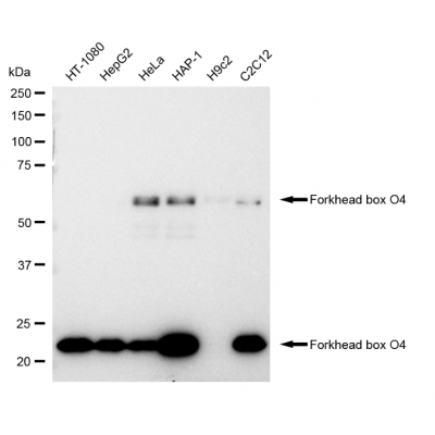 Reactivity: Human, Mouse, Rat Applications: WB, IF/IC, FCM, WB-KD Isotype: IgG Clone: 23GB1470 Host Species: Rabbit Clonality: Monoclonal Synonyms: FOXO4; Forkhead Box O4; AFX1; MLLT7; Myeloid/Lymphoid Or Mixed-Lineage Leukemia (Tri..