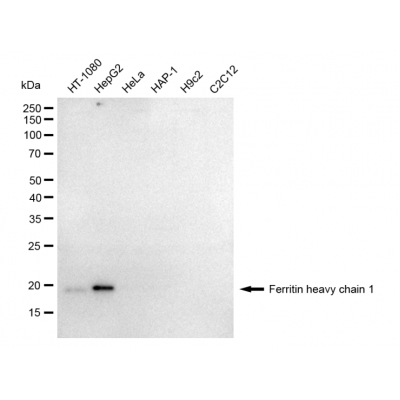 Reactivity: Human Applications: WB, IF/IC, WB-KD Isotype: IgG Clone: 23GB1860 Host Species: Rabbit Clonality: Monoclonal Synonyms: FTH1; Ferritin Heavy Chain 1; FTH; PIG15; FTHL6; PLIF; FHC; Cell Proliferation-Inducing Gene 15 Prote..