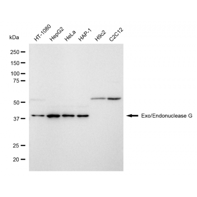 Reactivity: Human Applications: WB, IF/IC, WB-KD Isotype: IgG Clone: 23GB1370 Host Species: Rabbit Clonality: Monoclonal Synonyms: Exo/Endonuclease G; ENGL; Endonuclease G-Like 1; ENDOGL1; ENDOGL2; ENGL-A; ENGL-B; Endo/Exonuclease (..