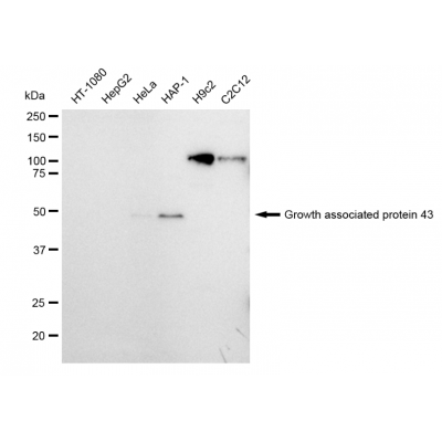 Reactivity: Human Applications: WB, IF/IC, FCM, WB-KD Isotype: IgG Clone: 23GB1195 Host Species: Rabbit Clonality: Monoclonal Synonyms: GAP43; Growth Associated Protein 43; Axonal Membrane Protein GAP-43; Neural Phosphoprotein B-50;..