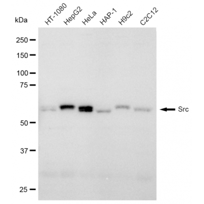 Reactivity: Human, Mouse, Rat Applications: WB, IF/IC, FCM, WB-KD Isotype: IgG Clone: 23GB980 Host Species: Rabbit Clonality: Monoclonal Synonyms: SRC Proto-Oncogene, Non-Receptor Tyrosine Kinase; SRC1; ASV; V-Src Avian Sarcoma (Sch..