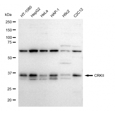 Reactivity: Human, Mouse, Rat Applications: WB, IF/IC, FCM, WB-KD Isotype: IgG Clone: 23GB1405 Host Species: Rabbit Clonality: Monoclonal Synonyms: CRK; CRK Proto-Oncogene, Adaptor Protein; V-Crk Avian Sarcoma Virus CT10 Oncogene Ho..
