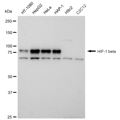 Reactivity: Human Applications: WB, IF/IC, FCM, WB-KD Isotype: IgG Clone: 23GB660 Host Species: Rabbit Clonality: Monoclonal Synonyms: Aryl Hydrocarbon Receptor Nuclear Translocator ; BHLHe2; HIF-1beta; Class E Basic Helix-Loop-Heli..